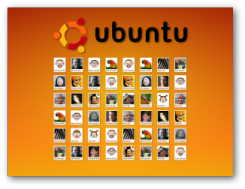 (notez que ça, ça n'a évidemment rien de nouveau, ça fait 10 ans que cela existe sous tous les environnement y compris GNOME : dans le GDM actuel, la sélection d'un nom d'utilisateur accompagné d'un photo est possible en configurant le thème approprié de GDM (dans certains distrib c'est ainsi configuré par défaut, pas dans Ubuntu) ; la nouveauté tient plutôt aux effets vectoriels qui accompagnent cette sélection)